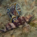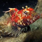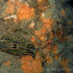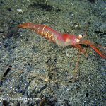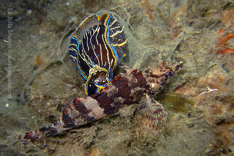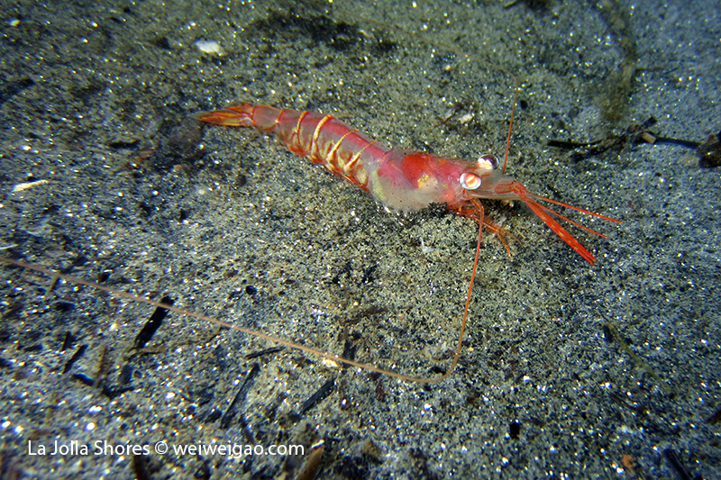 I dropped a bit earlier and swam pass the sand dollar field. The water was calm and the visibility was pretty good. The whole area was filled with sand crabs and target shrimps. Even from far, I could see the crab raise their claws high, posing a strong defensive gesture. The shrimp was basically doing the same, swimming instead of crawling. Between individuals, they kept on switching positions in a coordinated fashion. As the result, the whole area looked quite busy, like a night market.